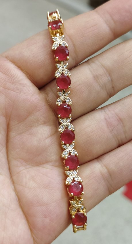 +วัดใจเทขาดทุน+ กำไลแขนทับทิมยาว 7.นิ้วสลับเพทายเม็ดคัดจิ๋ว งานจิวเวลลี่ชุบทองแท้