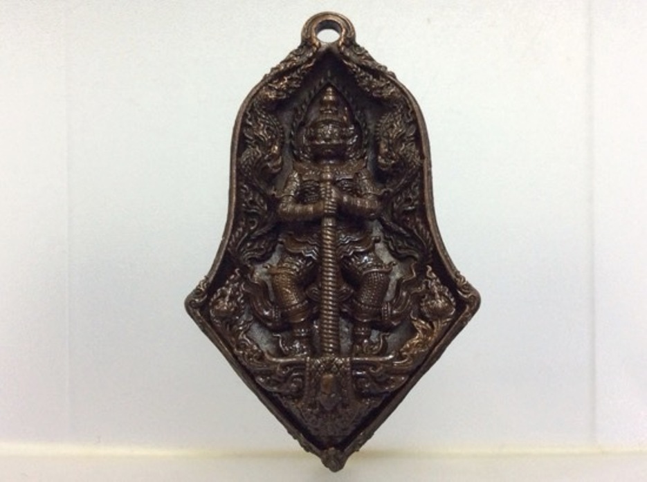 1000.-เหรียญท้าวเวสสุวรรณ รุ่น จำปีพุทธศิลป์ หลวงพ่ออิฏฐ์ วัดจุฬามณี ปี2563 เนื้อทองแดงรมดำมันปู พิมพ์ใหญ่ หล่อตัดแบ่งจากช่อ