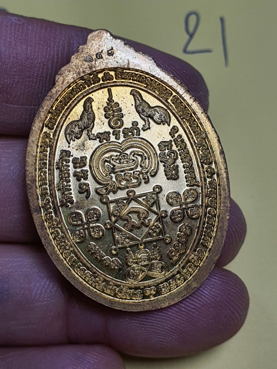 45 บาท เหรียญรูปไข่ พญาไก่ เฮงหนุนดวง หลวงพ่อพัฒน์ วัดห้วยด้วน