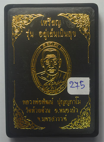 เหรียญหลวงพ่อพัฒน์ วัดห้วยด้วน นครสวรรค์ รุ่น อยู่เย็นเป็นสุข เนื้อทองทิพย์ลงยา เลข 275