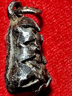 พระปิดตาเล็กองค์เก่าหล่อในกรอบโลหะเลี่ยมติดถาวร ไม่ทราบที่
