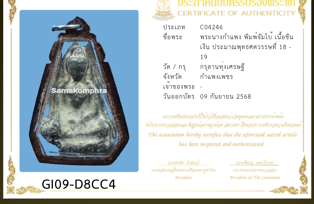 พระนางกำแพง พิมพ์จัมโบ้ เนื้อชินเงิน กรุลานทุ่งเศรษฐี+ใบเซอร์สมาคม