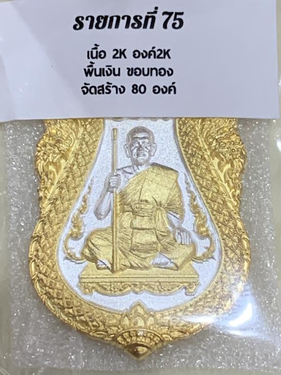 เหรียญเสมาพญาเสืออุดมทรัพย์ พระอาจารย์ประสูติ (หลวงพ่อประสูติ) วัดในเตา ตรัง เนื้อ2K องค์2K พื้นเงิน ขอบทอง หมายเลข 62 สร้างเพียง 80 องค์ พร้อมกล่องเดิม
