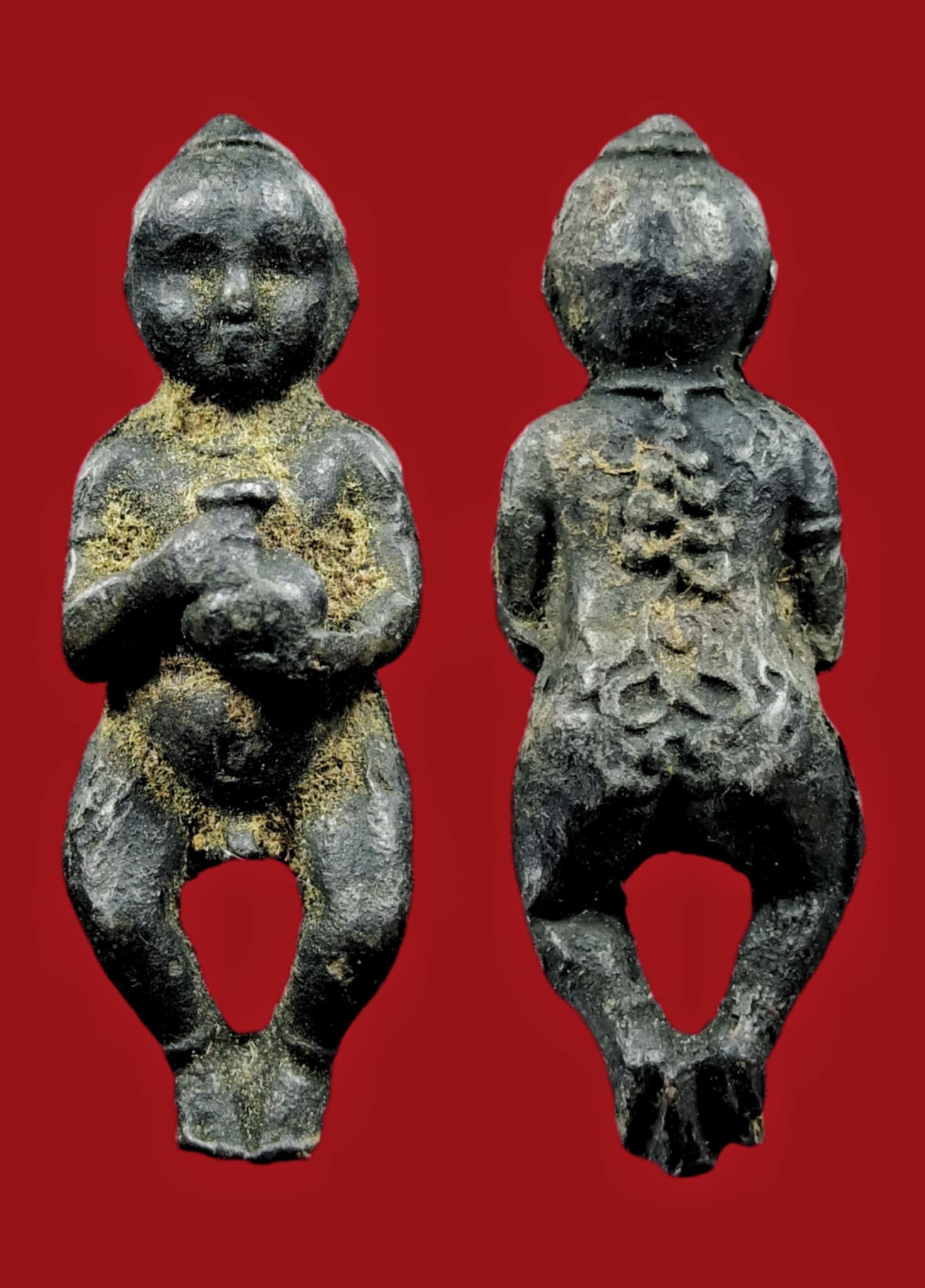 ((วัดใจค่ะ))กุมารทอง หลวงพ่อกวย ชุตินฺธโร (พิมพ์ใหญ) วัดโฆสิตาราม จ.ชัยนาท รุ่นฝังลูกนิมิต ปี2521 เนื้อตะกั่วอาบทองแดง #พร้อมบัตรรับรองค่ะ