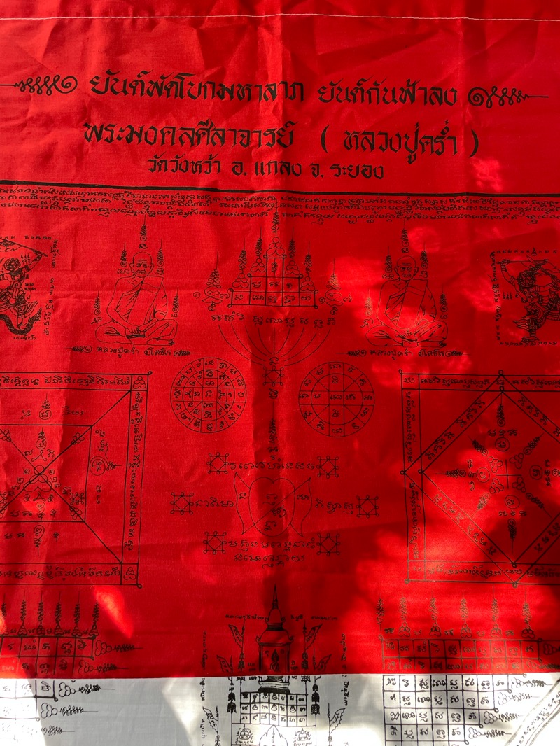 วัดใจ 120 บ ผ้ายันต์พัดโบกหลวงปู่คร่ำ ผืนใหญ่ ปั๊มตราวัด