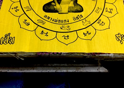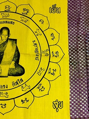 ผ้ายันต์หลวงพ่อแดง "อยู่ เย็น เป็น สุข" ขนาด12x12นิ้ว วัดแหลมสอ อ.เกาะสมุย จ.สุราษฎรษ์ธานี