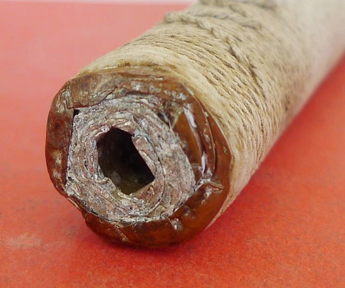ตะกรุด6.7นิ้ว เนื้อมิเนียม+ทองแดง ถักเชือกปอแก้ว เคาะเดียวแดง300