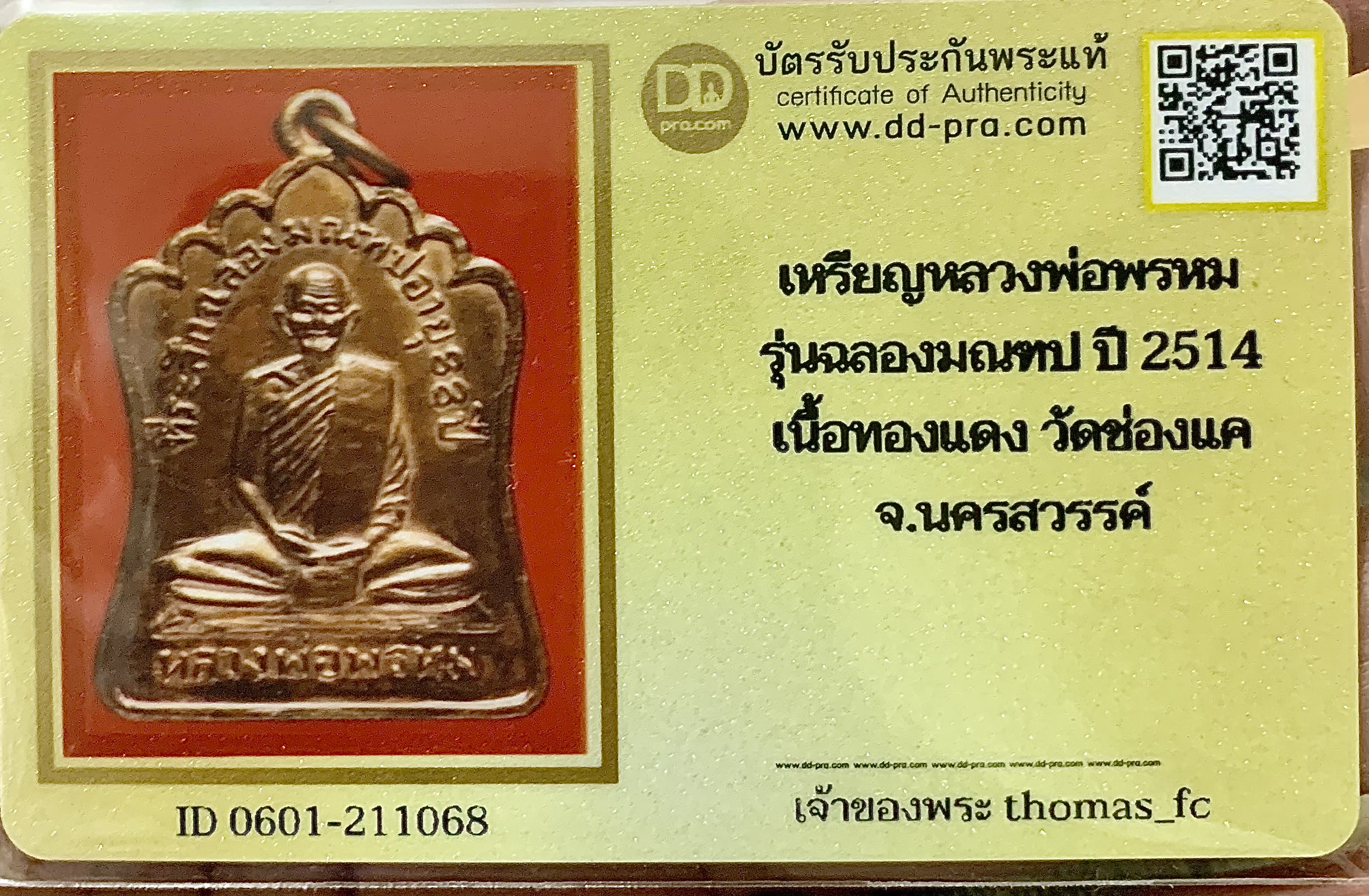 เหรียญหลวงพ่อพรหม รุ่นฉลองมณฑป ปี 2514 เนื้อทองแดง วัดช่องแค จ.นครสวรรค์