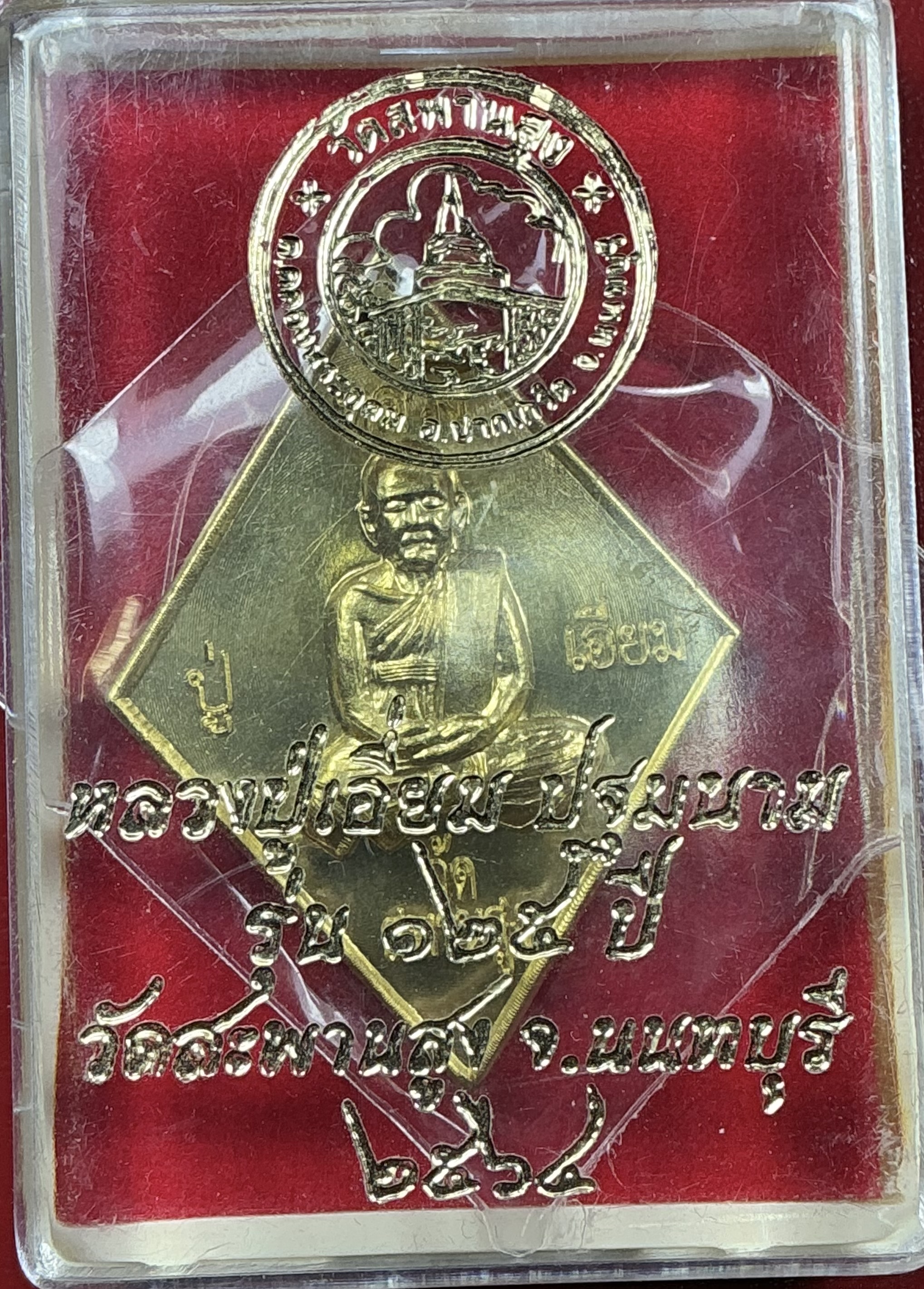 เหรียญหลวงปู่เอี่ยมวัดสะพานสูงข้าวหลามตัดรุ่น 125ปีเนื้อทองฝาบาตร