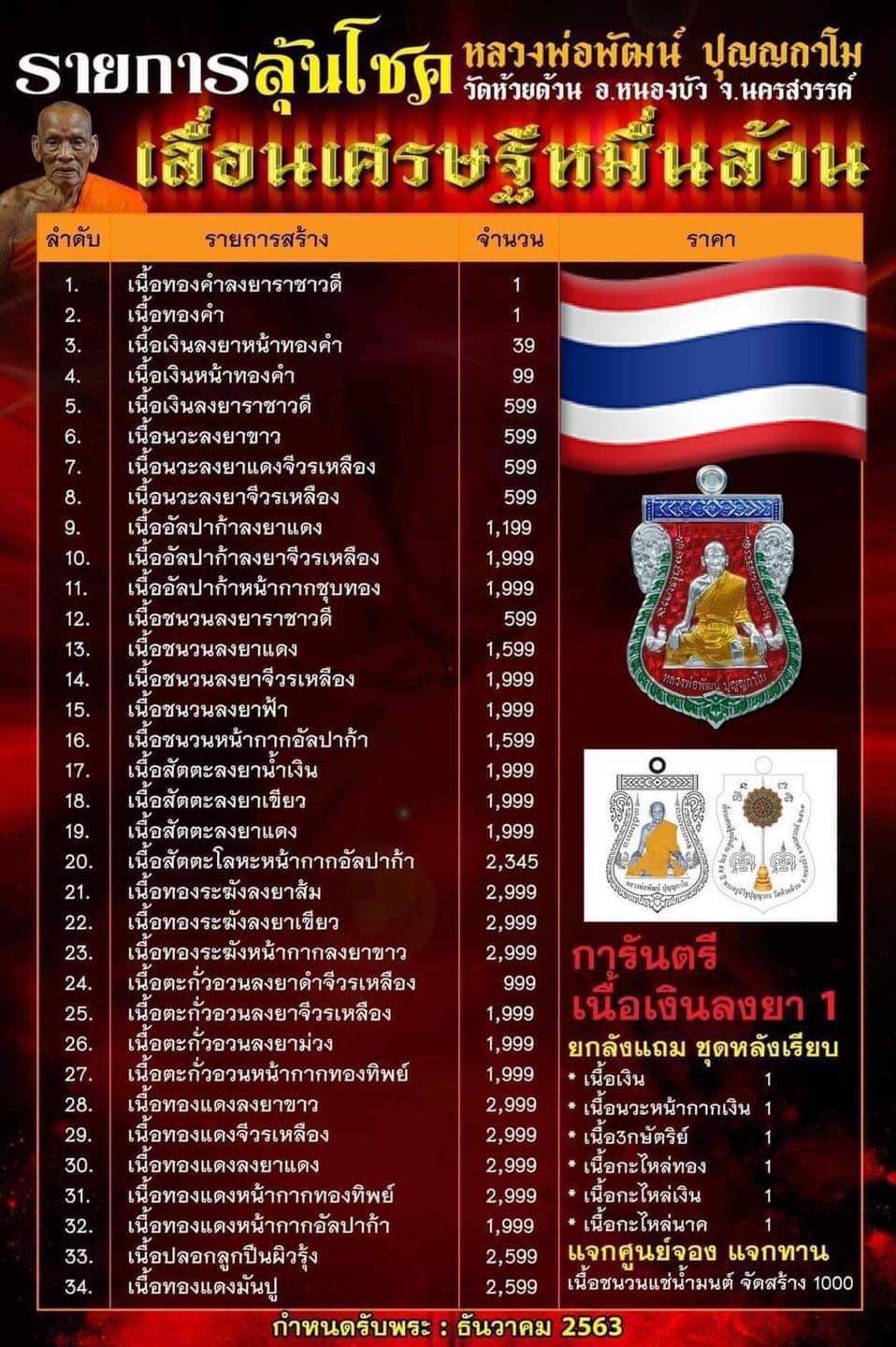 🌟📍วัดใจ20แดงครับ📍🌟.เหรียญหลวงพ่อพัฒน์วัดห้วยด้วน.รุ่นเลื่อนเศรษฐีหมื่นล้าน.ปี2563.รายการที่.32.เนื้อทองแดง.หน้ากากทองทิพย์.หมายเลข676.จัดสร้างน้อย2,999เหรียญเท่านั้นครับ.พร้อมกล่องเดิมครับ.