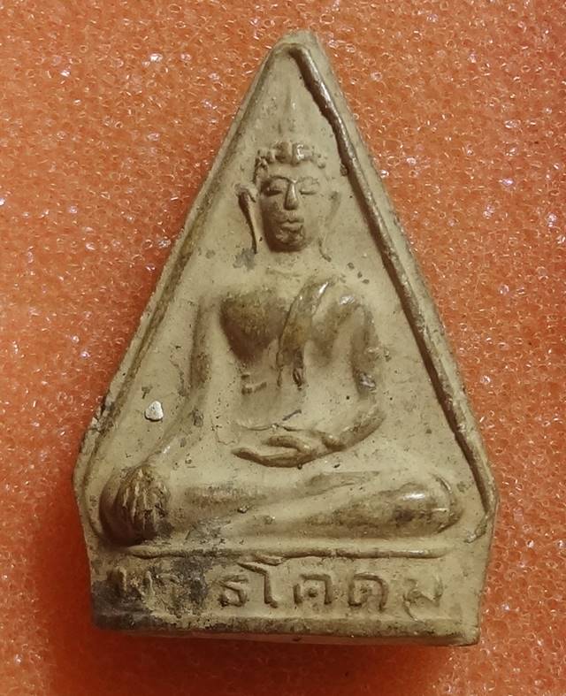 พระพุทธโคดม พิมพ์ห้าเหลี่ยม หลวงพ่อขอม วัดไผ่โรงวัว จ.สุพรรณบุรี เนื้อดิน ปี ๒๕๐๕