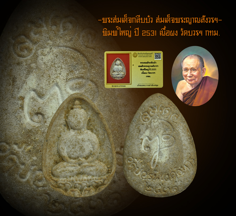 *** พระสมเด็จกลีบบัว สมเด็จพระญาณสังวรฯ พิมพ์ใหญ่ ปี 2531 เนื้อผง วัดบวรฯ กทม. + บัตร DD-pra ***