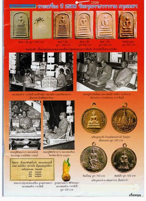 พระชุดนี้สร้างขึ้นในปีพ.ศ. 2508 โดยทางวัดอรุณฯ.ได้ทำการสร้างพระชุดนี้ เพื่อเป็นอนุสรณ์ในวาระ 100 ปีของพระเครื่องสมเด็จพุฒาจารย์ (โต) พรหมรังสี ทางวัดได้ผสมมวลสารผงสมเด็จเก่า และสรรพมวลสารวิเศษมากมาย..... -ผงสมเด็จวัดระฆัง และผงบางขุนพรหมอย่างเข้มข้น -ผงธูปตามสถานที่พระพระพุทธรูปสำคัญ อาทิ พระแก้วมรกต,หลวงพ่อโสธร,หลวงพ่อชินราช,หลวงพ่อวัดบ้านแหลม,หลวงพ่อชัยมงคลจินดามณี,ศาลเจ้าพ่อหลักเมือง เป็นต้น -ดินสถานที่สำคัญต่างๆ -ดินสังเวชนีย์สถานสี่ตำบล -ว่าน 400 กว่าชนิด -เกสรดอกไม้ 108 -น้ำมนต์วัดพระแก้ว,น้ำมนต์พ่อท่านคล้าย -ชานหมากพ่อท่านคล้าย ผงอิทธิเจพ่อท่านคล้าย เป็นต้น โดยมีพิธีพุทธาภิเษกอันยิ่งใหญ่ พร้อมพระเกจิอาจารย์ 109 รูป ร่วมพิธี อาทิ 1. พ่อท่านคล้าย วัดสวนขัน 2. หลวงปู่นาค วัดระฆัง กรุงเทพฯ 3. หลวงพ่อเอีย วัดบ้านด่าน 4. หลวงพ่อเงิน วัดดอนยายหอม จ.นครปฐม 5. หลวพ่อเนื่อง วัดจุฬามณี 6. หลวงพ่อเต๋ คงทอง วัดสามง่าม 8. หลวงพ่อ แทน วัดธรรมเสน ฯลฯ 9. หลวงพ่อชื่น วัดตำหนักเหนือ 10. เจ้าคุณ นรฯ วัดเทพศิรินทร์ (มาโดยญาณ) 11. หลวงปู่เทียน วัดโบสถ์ ปทุมธานี 12. หลวงพ่อทอง วัดจักรวรรดิ์ เป็นต้น และตามใบฝอยแจ้งไว้ว่า พระรูปที่ 109 คือ ท่านเจ้าคุณนรฯ. ยังเพ่งอธิษฐานจิตมาจากวัดเทพศิรินทร์อีกด้วย