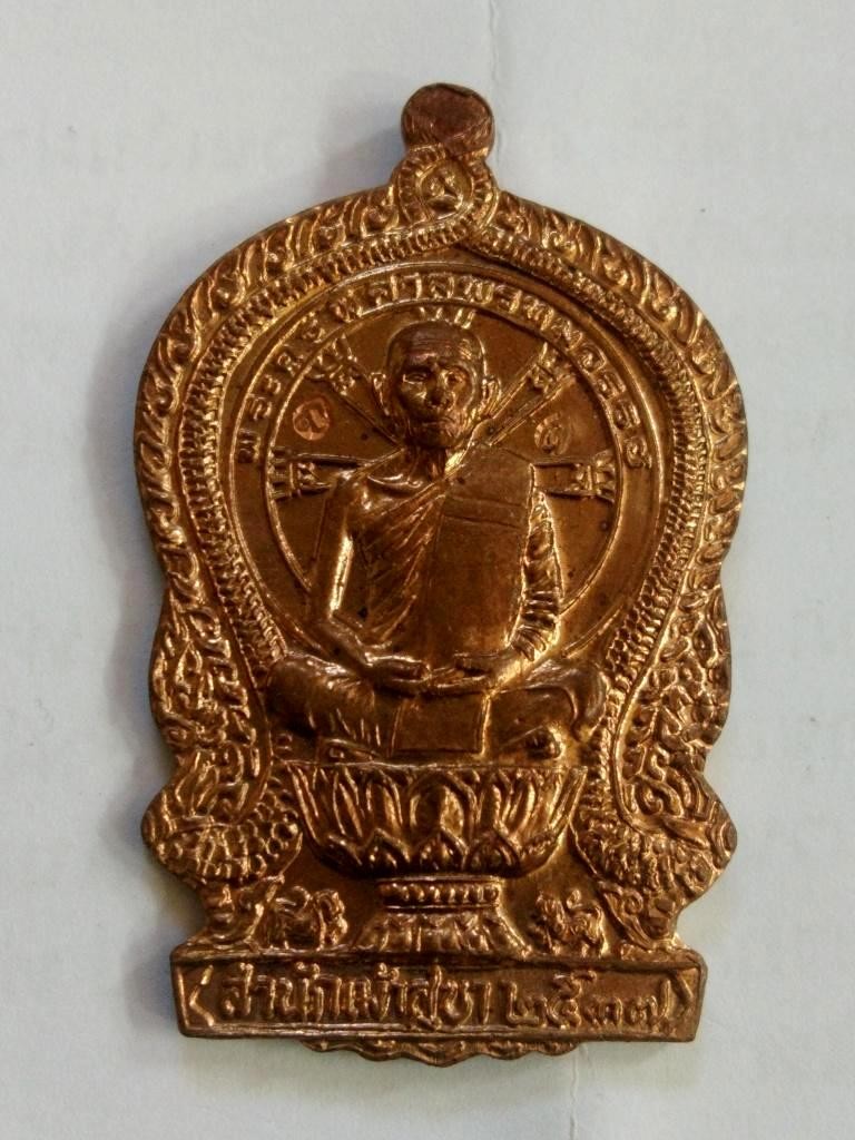 250.-เหรียญนั่งพานลพ.มหาสวัสดิ์ สำนักเม้าสุขา ปี37 จ.ชลบุรี รุ่น 1 เนื้อทองแดง