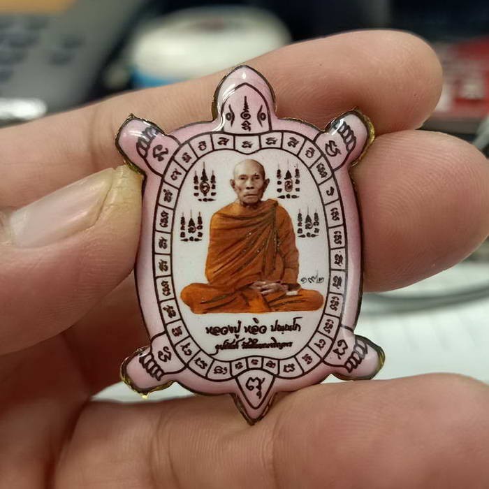 2-132 ล็อกเก็ตเต่ารวยไม่หยุด รุ่นเหลือกิน เหลือใช้ หลวงปู่หลิว ออกวัดสี่แยกเจริญพร ปี 2561 ฉากชมพู หลังทอง หมายเลข 192 ไม่หลุดมากันเลย กล่องเดิม