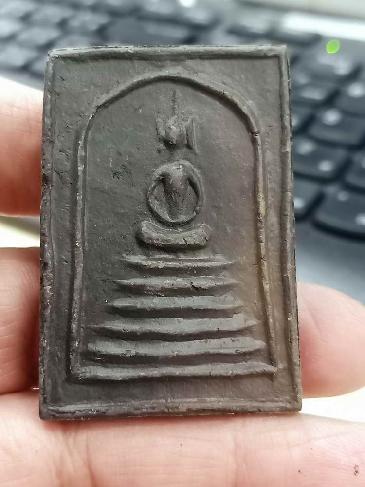 2-1864 วัดใจ 100 พระสมเด็จจัมโบ้ 6 ชั้น หูบายศรี หลังรูปเหมือน ยันต์สี่ หลวงพ่อชำนาญ วัดบางกุฎีทอง จ.ปทุมธานี เนื้อดินเผาดำใบลาน***วัดชินวรารามวรวิหาร