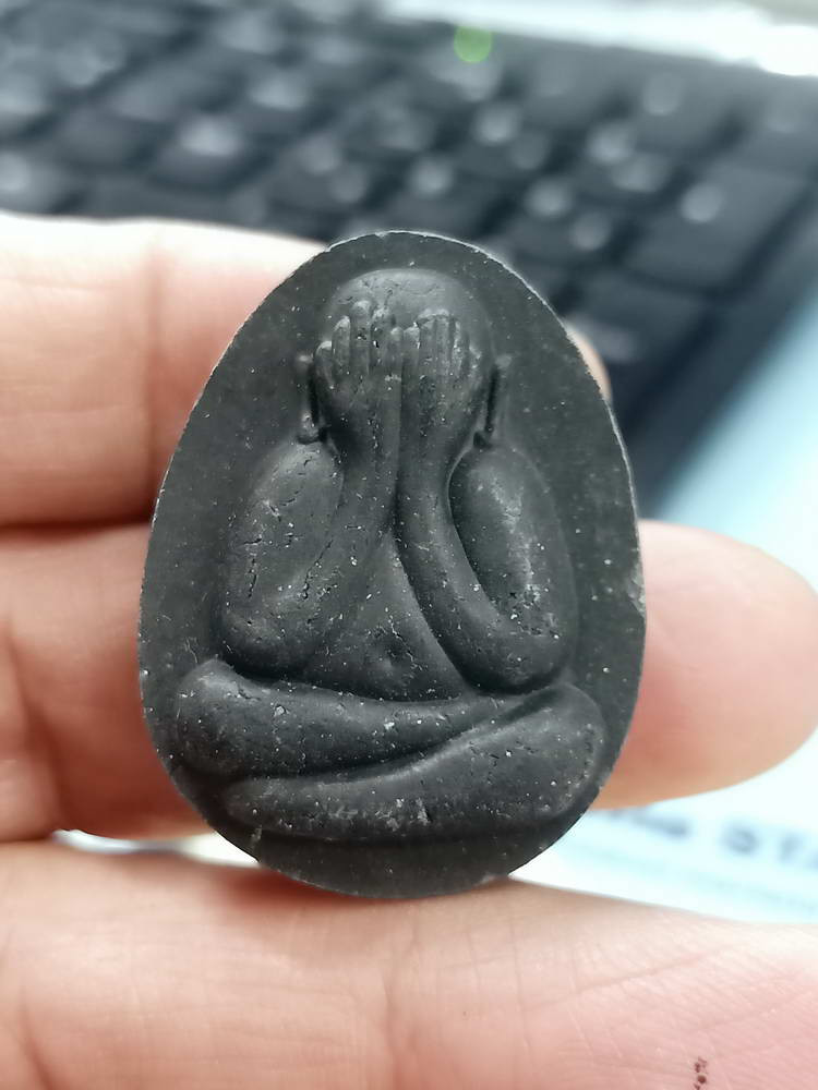 2-1872 วัดใจ 100 G#3 พระปิดตามหาลาภ รามัญ หลวงพ่อชำนาญ วัดชินวราราม จ.ปทุมธานี ปี 2561 ผงดำใบลาน เสกนาน 2 ปี ในลังปืน***สายวัดชินวรารามวรวิหาร