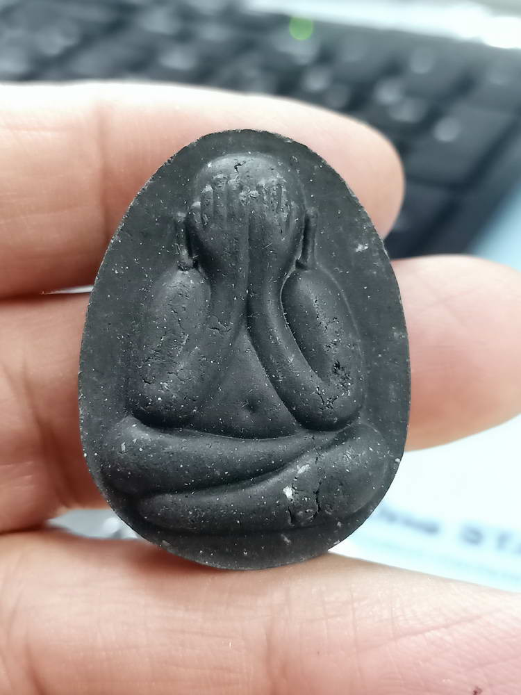 2-1873 วัดใจ 100 G#4 พระปิดตามหาลาภ รามัญ หลวงพ่อชำนาญ วัดชินวราราม จ.ปทุมธานี ปี 2561 ผงดำใบลาน เสกนาน 2 ปี ในลังปืน***สายวัดชินวรารามวรวิหาร
