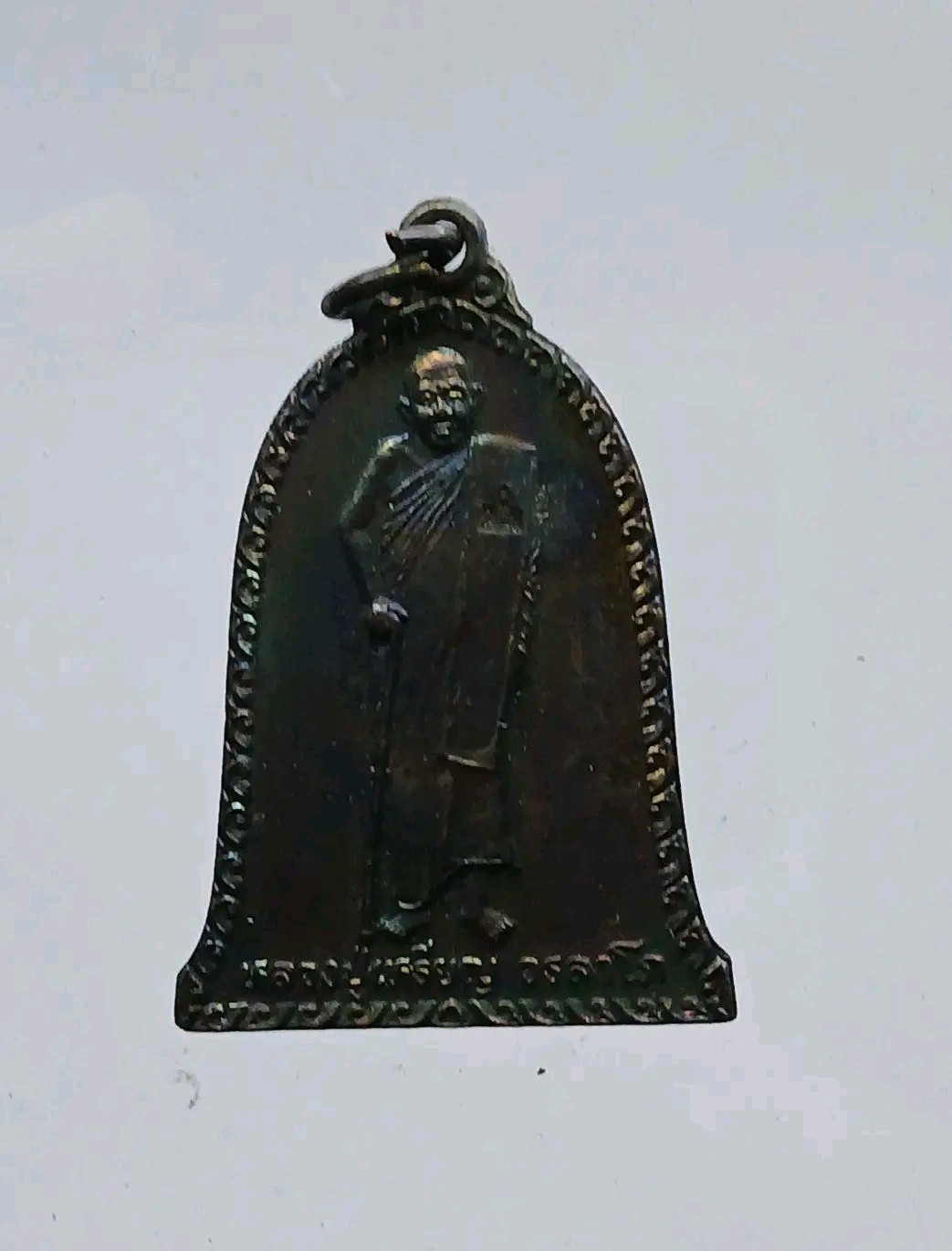 เหรียญระฆังหลวงปู่เหรียญ วรลาโภ วัดอรัญบรรพต จ.หนองคาย รุ่นฉลองเจดีย์ ปี2539 เนื้อทองแดงรมดำ ตอกโค๊ตสวย