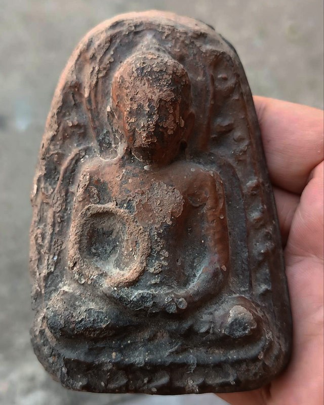 พระร่วงนั่งเนื้อดินเผา พิมพ์ทวาราวดี หลังจาร กรุหนองบัว อ.พนัสนิคม จ.ชลบุรี อายุ 1300 ปี