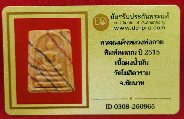 พระสมเด็จหลวงพ่อกวย พิมพ์คะแนน ปี2515 เนื้อผงน้ำมัน วัดโฆสิตาราม +พร้อมบัตรดีดีพระ