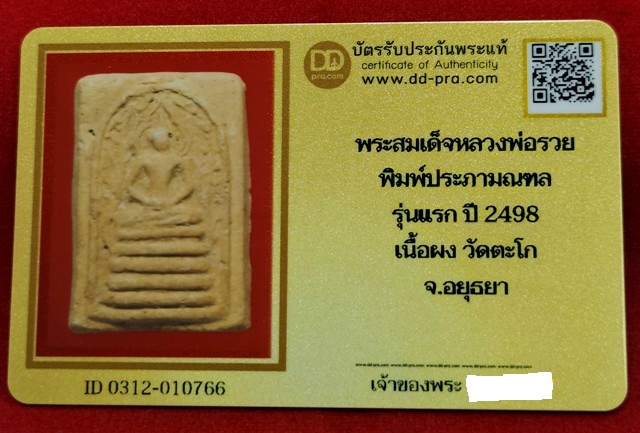 พระสมเด็จพิมพ์ประภามณฑล(รุ่นแรก) เนื้อผง ปี2498 หลวงพ่อรวย วัดตะโก จ.อยุธยา  +พร้อมบัตรดีดีพระ
