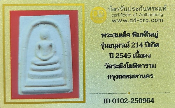 ʕ•́ᴥ•̀ʔっ. .สมเด็จวัดระฆัง พิมพ์ใหญ่ อนุสรณ์ 214 ปีเกิดชาตกาล เนื้อผง ปี 2545 วัดระฆังโฆษิตาราม กทม. + บัตรตรวจสอบ dd-pra