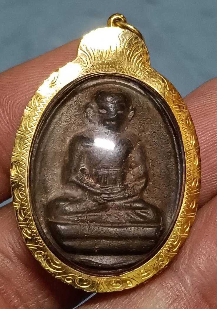 เหรียญรูปไข่หลวงพ่อไปล่วัดกำแพงรุ่นสองเนื้อนวะพร้อมเลี่ยมทองแท้ประกันพระแท้ทองแท้