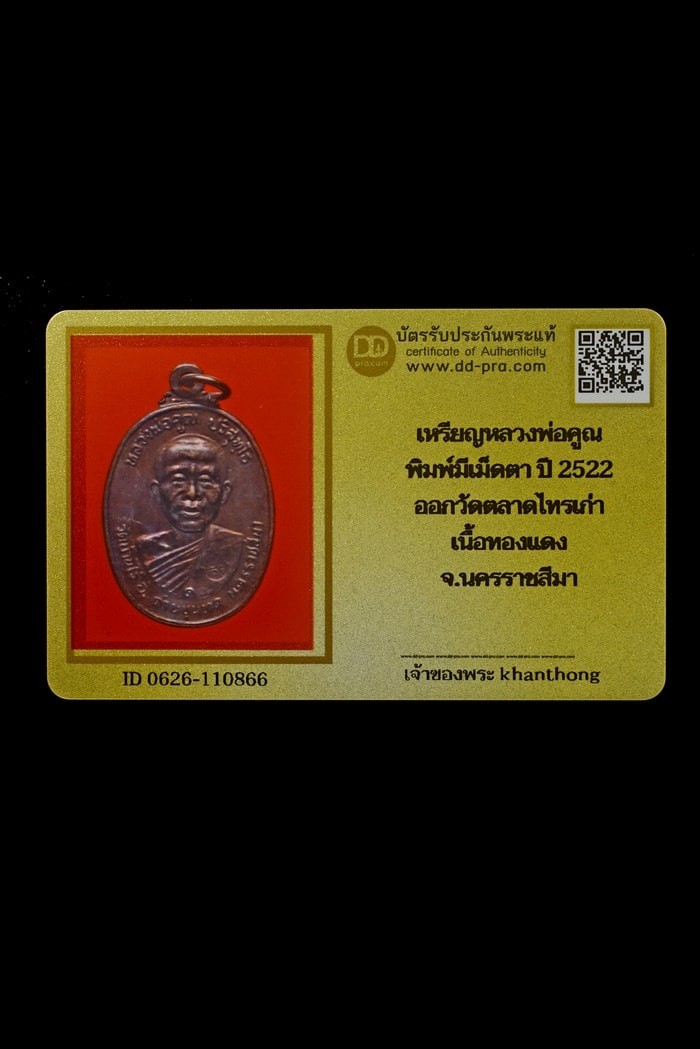 ʕ•́ᴥ•̀ʔっ..เหรียญหลวงพ่อคูณ ตลาดไทรเก่า บล๊อกมีเม็ดตา..ปี 2522 + บัตร dd-pra