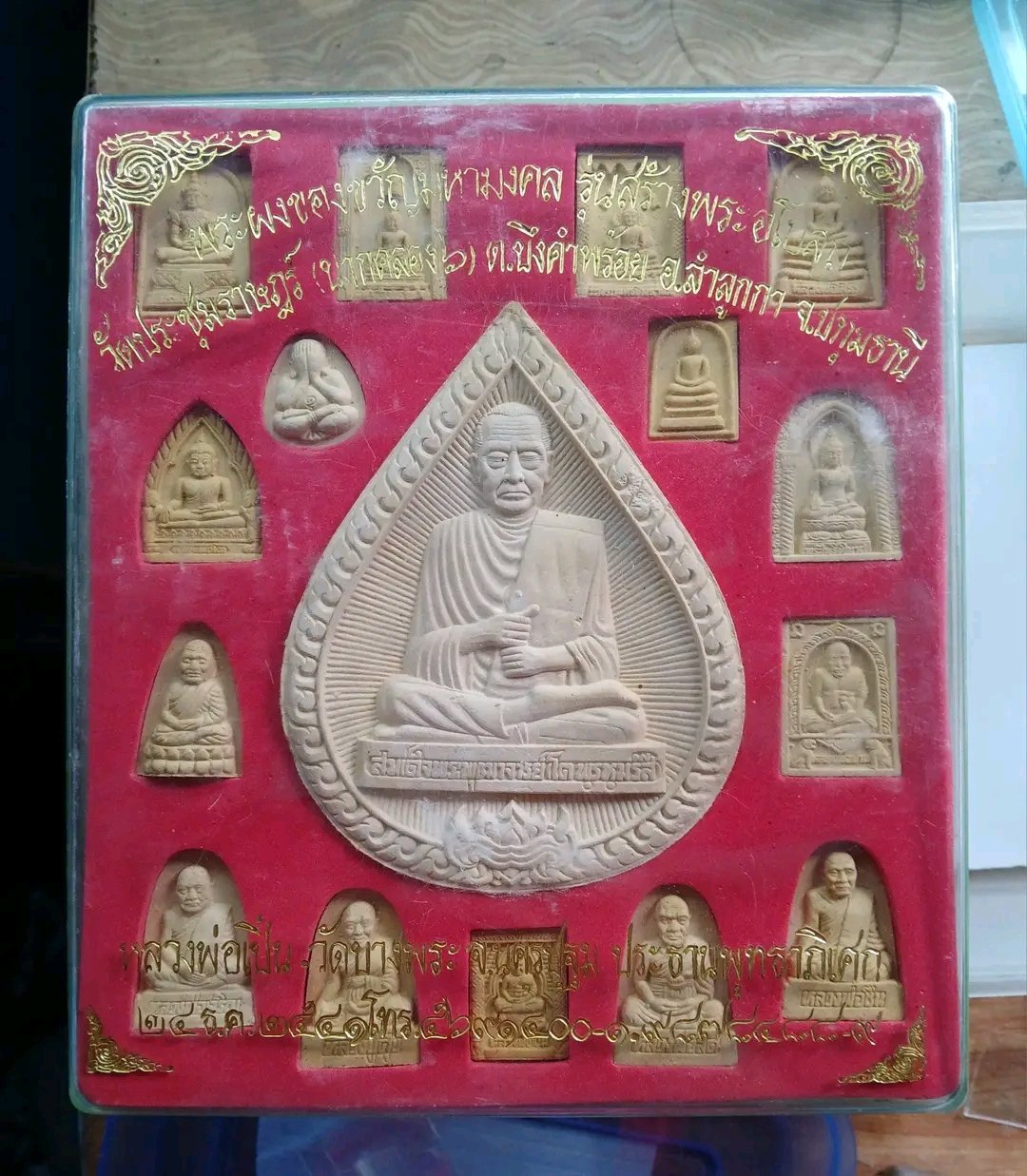 พระผงของขวัญมหามงคล ชุดกล่อง ๑๖องค์ รุ่นสร้างพระอุโบสถ วัดประชุมราษฎร์ (ปากคลอง๖) อ.ลำลูกกา จ.ปทุมธานี ๒๔ธ.ค.๒๕๔๑ หลวงพ่อเปิ่น วัดบางพระ จ.นครปฐม ปลุกเสก