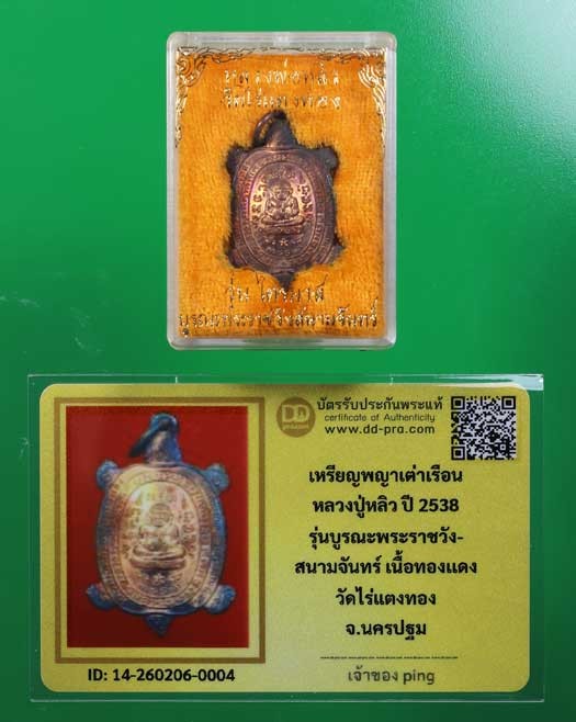 วัดใจ *-* เหรียญเต่า หลวงปู่หลิว วัดไร่แตงทอง รุ่นพิเศษบูรณะพระราชวังสนามจันทร์ เนื้อทองแดง ปี 2538 จ.นครปฐม (กล่องเดิม)
