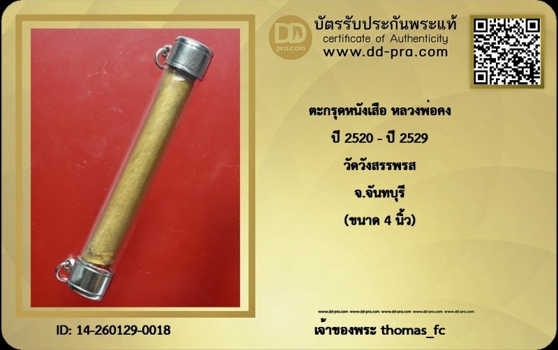 วัดใจ 10 บาท กับ ตะกรุดหนังเสือหุ้มพลาสติก หลวงพ่อคง วัดวังสรรรพรส นิยม 4 นิ้ว มาตฐานสากล + ใบรับรอง