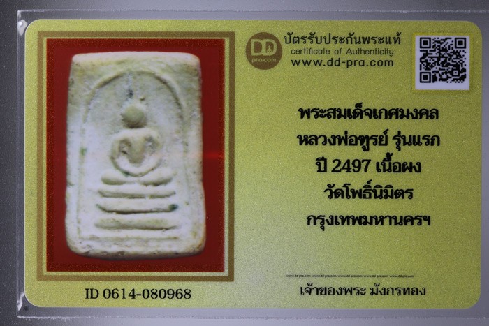 พระสมเด็จเกศมงคล รุ่นแรก หลวงพ่อฑูรย์ วัดโพธินิมิตร ปี 2497 เนื้อผง + บัตรดีดี
