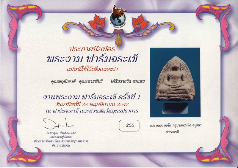 หลวงพ่อโต กรุบางกะทิง พิมพ์สมาธิ ล่ำลึก พร้อมใบประกาศ