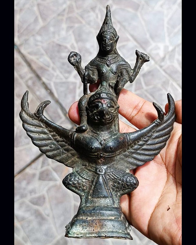พระเทวรูปโบราณ พระนารายณ์ทรงสุบรรณ (ครุฑ) เนื้อสำริด สูง 6.5 นิ้ว เก่ามาก