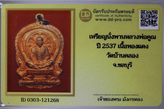 ฉลองเวปใหม่ เหรียญนั่งพานบ้านคลอง หลวงพ่อคูณ ปี 2537 เนื้อทองแดง + บัตรดีดี (กล่องเดิม)