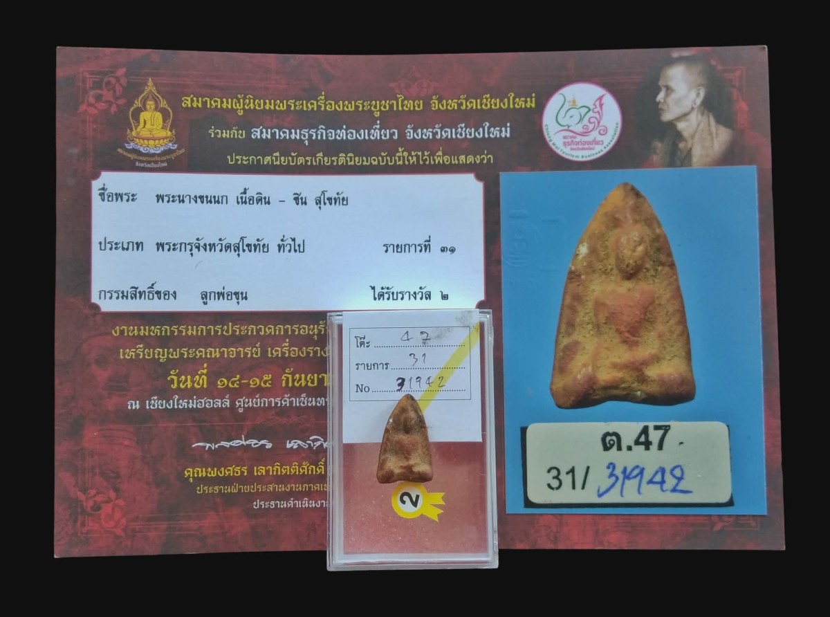 พระนางขนนก เนื้อดิน กรุเตาทุเรียง จ.สุโขทัย ที่ 2 งานสมาคม