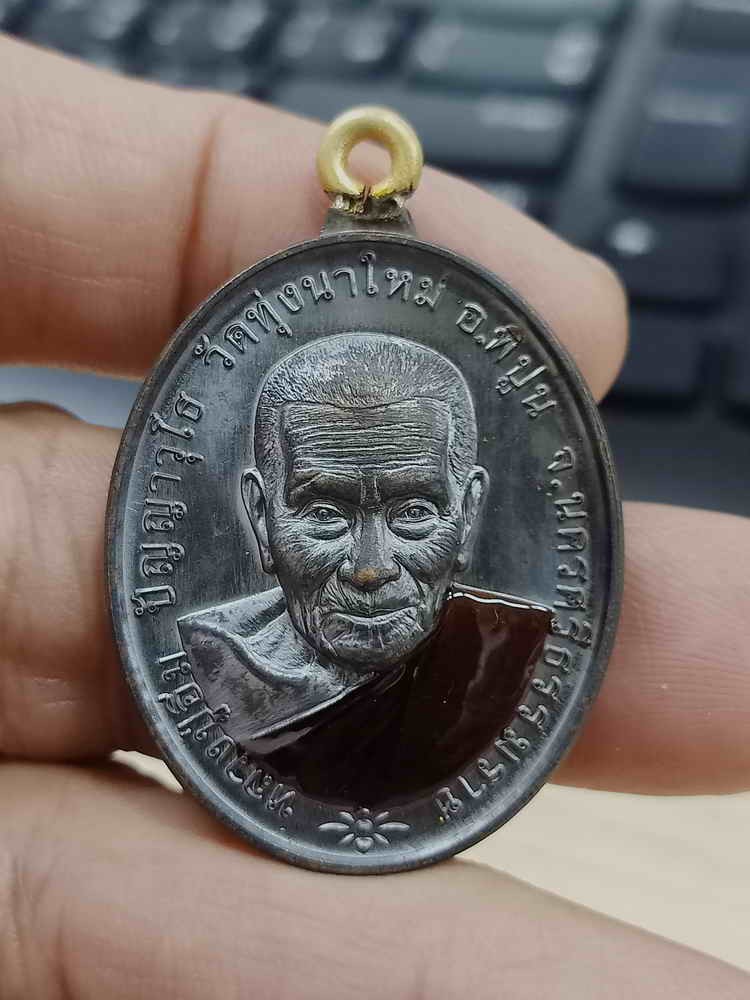 2-1176 วัดใจ 100 เหรียญห่วงเชื่อม รวยชนะจน 106 ปี หลวงปู่อิ่ม วัดทุ่งนาใหม่ จ.นครศรีธรรมราช ปี 2566 ทองแดง ห่วงเชื่อม ลงยาจีวร หมายเลข 43 กล่องเดิม