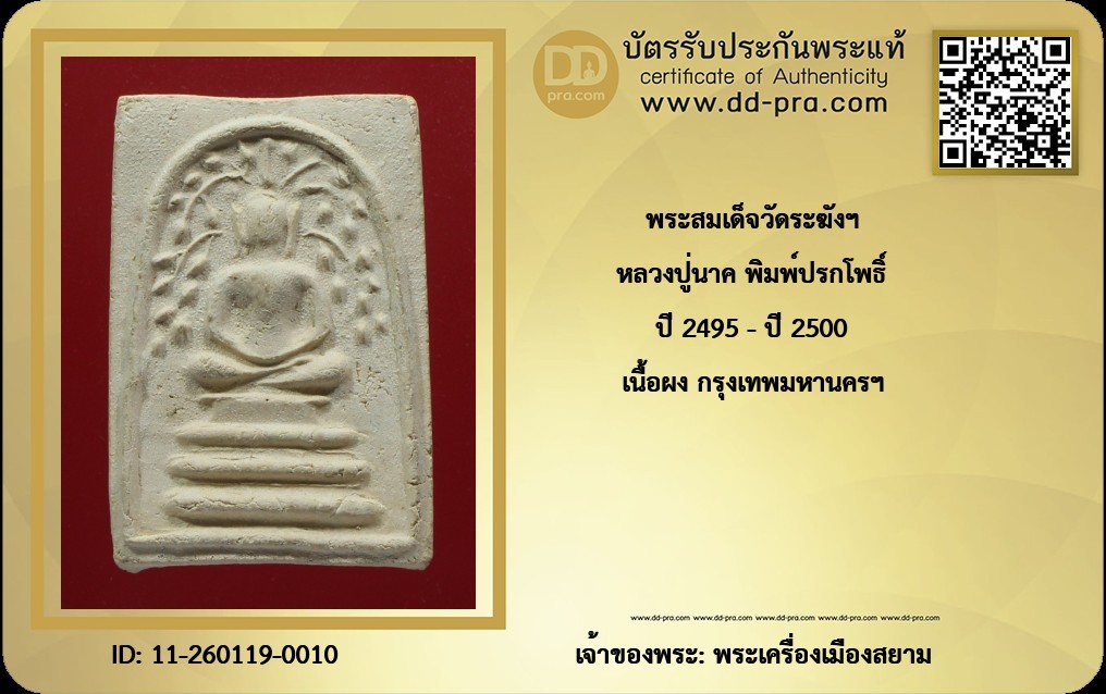 +++ เริ่มประมูล พระแท้ๆ ครับ พระสมเด็จวัดระฆังฯ หลวงปู่นาค พิมพ์ปรกโพธิ์ ปี 2495 เนื้อผง วัดระฆังฯ กทม. เนื้อจัดจ้าน +++ หายากมาก ครับ ข้อมูลตามบัตรรับประกัน ครับ +++