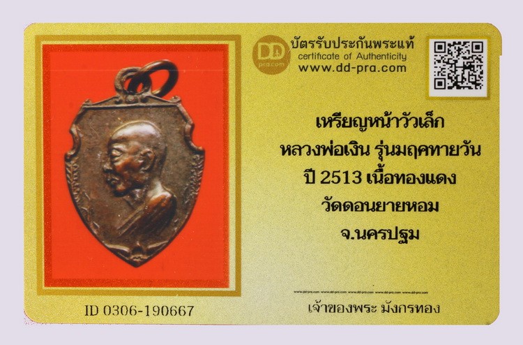 ʕ•́ᴥ•̀ʔっ..เหรียญหน้าวัวเล็ก หลวงพ่อเงิน วัดดอนยายหอม + บัตรตรวจสอบ