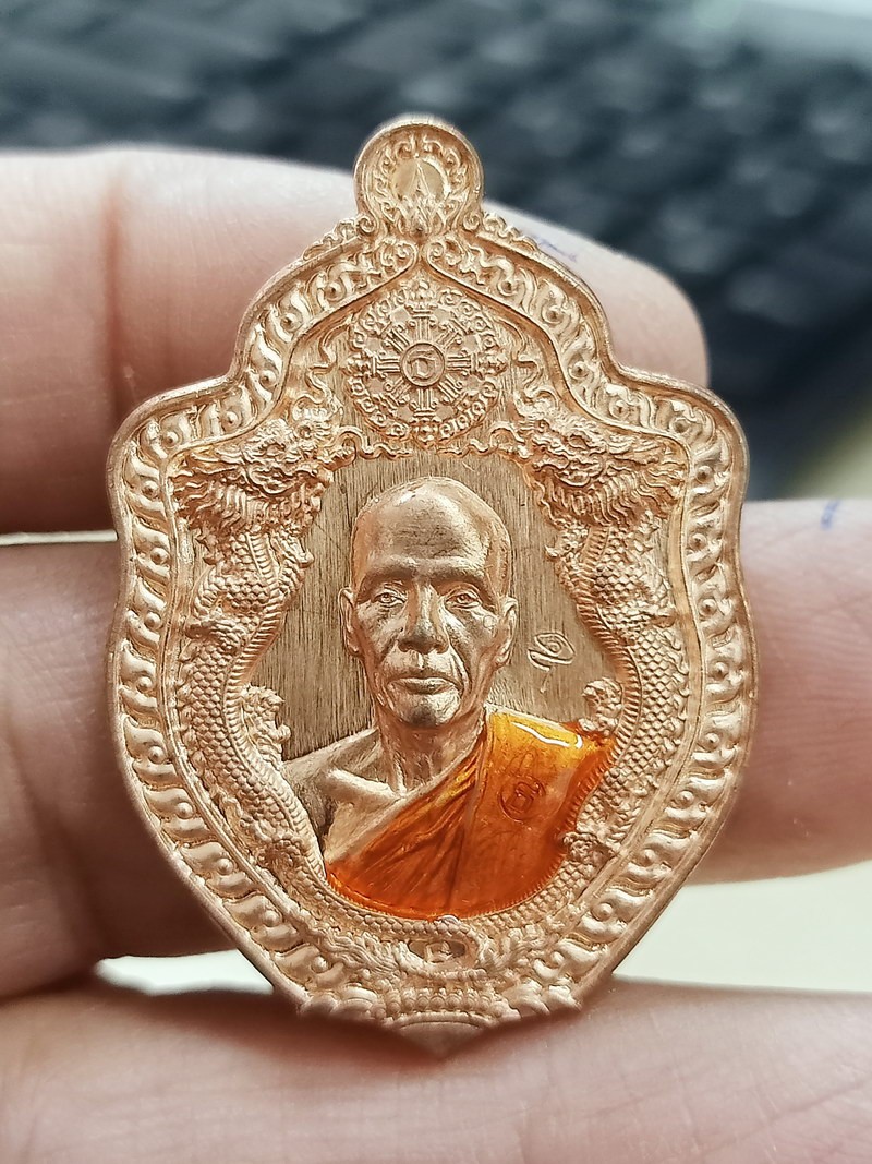 1-1943 วัดใจ 100 เหรียญมังกรคู่ หลวงพ่อสุทัศน์ วัดป่าช้างลง จ.สุรินทร์ 2563 ทองแดง ลงยาจีวร หมายเลข 148 กล่องเดิม