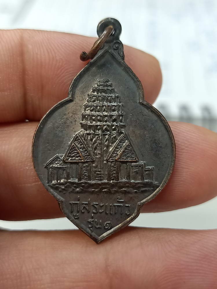 D242 วัดใจ 50 เหรียญรุ่น 1 กู่สระแก้ว พระเจ้าไชสุริยวรมันต์ที่ 2 วัดป่ากิริยาวิเวก จ.ร้อยเอ็ด 2528 ทองแดงรมดำ