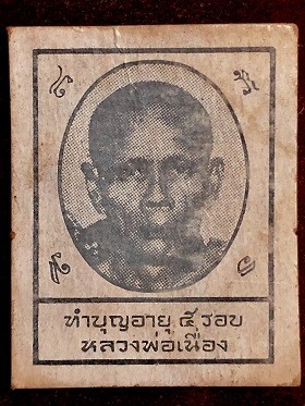 รูปถ่ายหลวงพ่อเนื่อง ทำบุญอายุ๕รอบ ขนาด1.5x1.5นิ้ว วัดจุฬามณี จ.สมุทรสงคราม พ.ศ. ๒๕๑๒