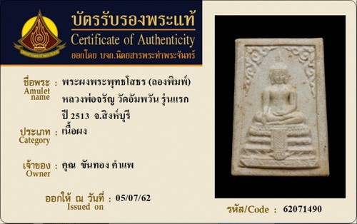 ʕ•́ᴥ•̀ʔっ..พระผงพระพุทธโสธร (ลองพิมพ์) หลวงพ่อจรัญ วัดอัมพวัน รุ่นแรก ปี 2513 + บัตรตรวจสอบ