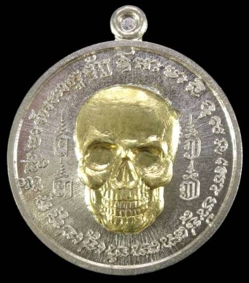 เหรียญกะโหลก (เหรียญพรายกระซิบ ขอฟ้าไม่ได้ให้มาขอดิน) เนื้ออัลปาก้าหน้ากากทองทิพย์ สวยครับ
