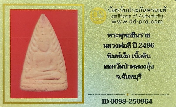 ʕ•́ᴥ•̀ʔっ. . พระพุทธชินราข ท่านพ่อลี เนื้อดิน พิมพ์เล็ก ปี พ.ศ.2496 + บัตรตรวจสอบ dd-pra