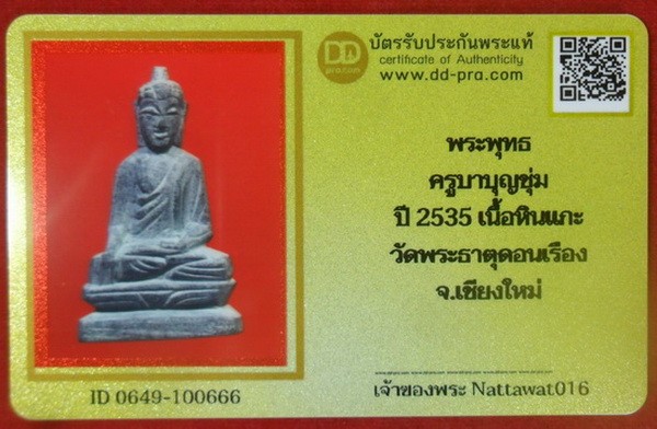 ʕ•́ᴥ•̀ʔっ. .พระพุทธ ครูบาบุญชุ่ม เนื้อหินแกะ วัดพระธาตุดอนเรือง จ.เชียงใหม่ปี2535 + บัตรตรวจสอบ