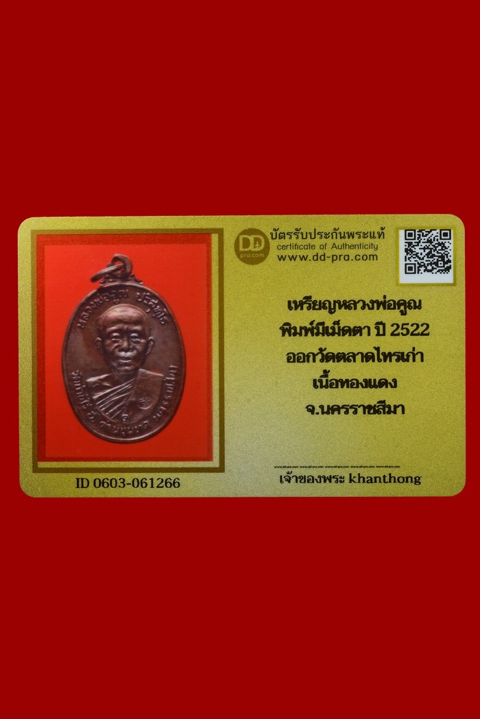 ʕ•́ᴥ•̀ʔっ..เหรียญหลวงพ่อคูณ ตลาดไทรเก่า บล๊อกมีเม็ดตา..ปี 2522 + บัตร dd-pra