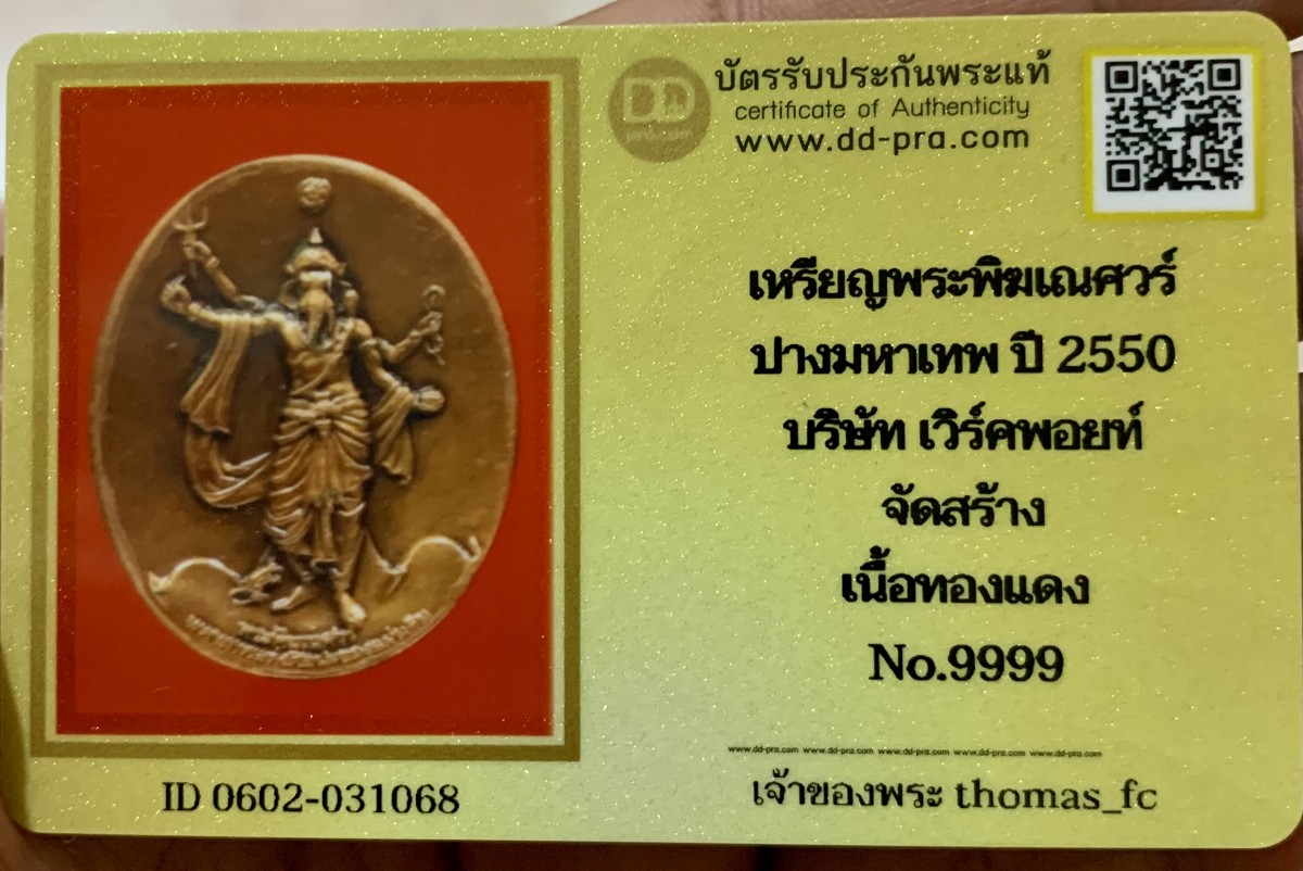 ʕ•́ᴥ•̀ʔっ. .เหรียญพระพิฆเนศ ปางมหาเทพ ปี 2550 +บัตรตรวจสอบพระ
