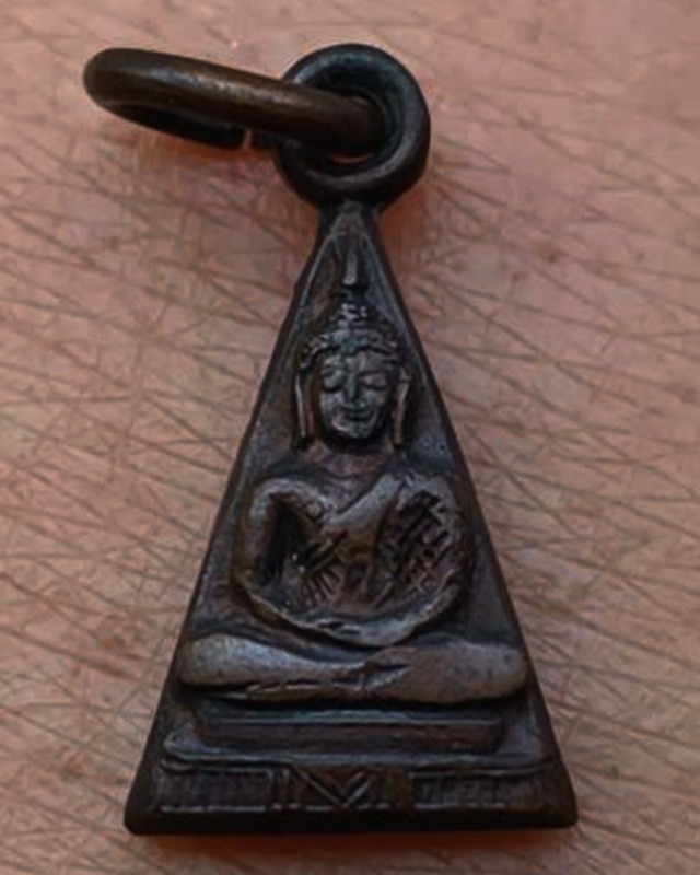 เหรียญพระพุทธพิมพ์สามเหลี่ยมหลังเรียบ พระบ้านเก่าเก็บหลายสิบปี ขนาดสูงรวมหู 1.6 ซ.ม.